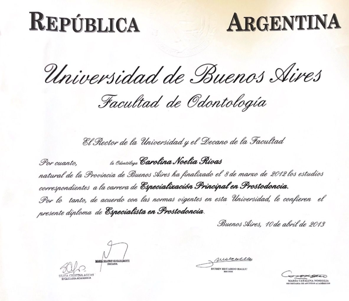 - Especialista Principal en Prostodoncia UBA