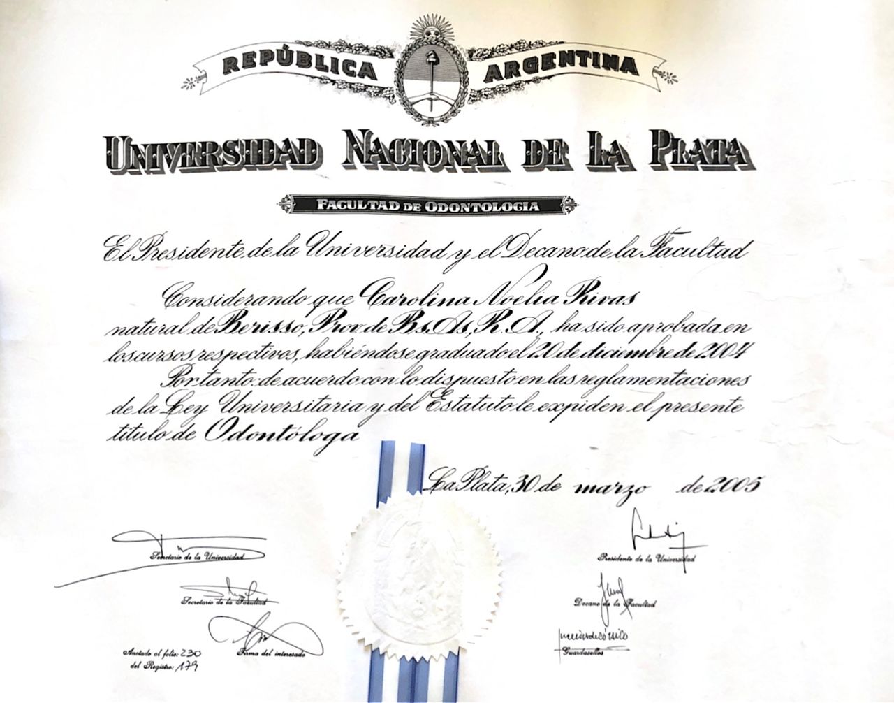 - Odontóloga UNLP 2004