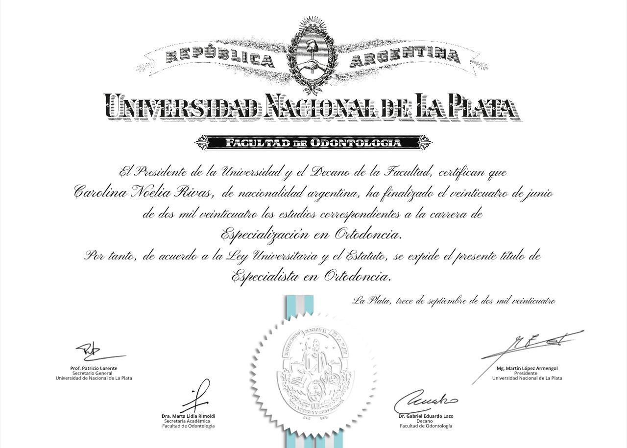 - Especialista en Ortodoncia UNLP